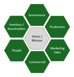 § Vision / Mission: The vision/mission is the public facing version of the Founder Goal. It needs to contain the key elements to ensure that it’s clear to all staff what they are focussed on. But some elements don’t need to be included, for example if the business is going to be sold, that’s not necessary to include (because the business will continue after the sale).