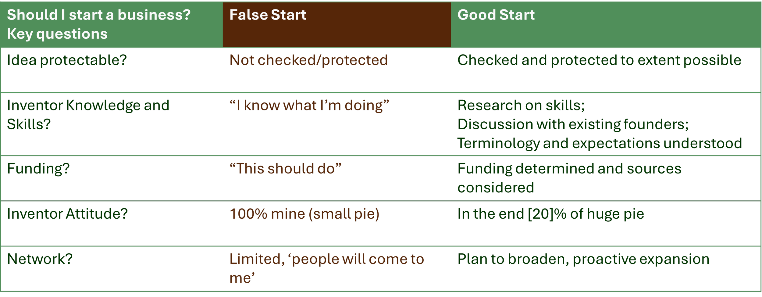 Funding is a key requirement which determines the success of your future business. Depending on the nature of your invention, your funding requirements are going to be very different. Be clear on what you want out of your proposed business - licencing your tech may in fact be a better bet than trying to commercialise it - depending on what you want.